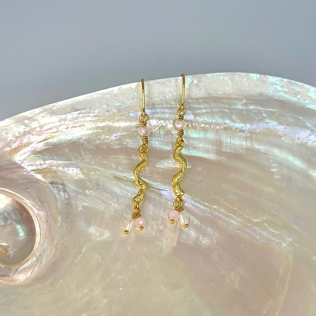 Vi bruger smukke perler som ferskvandsperler, zirkonia og glasperler. Ferskvandsperlerne kommer i mange forskellige former og størrelser, hvilket giver hvert smykke et unikt udtryk, mens zirkonia og glasperler tilfører en smuk glans og ekstra glimt.